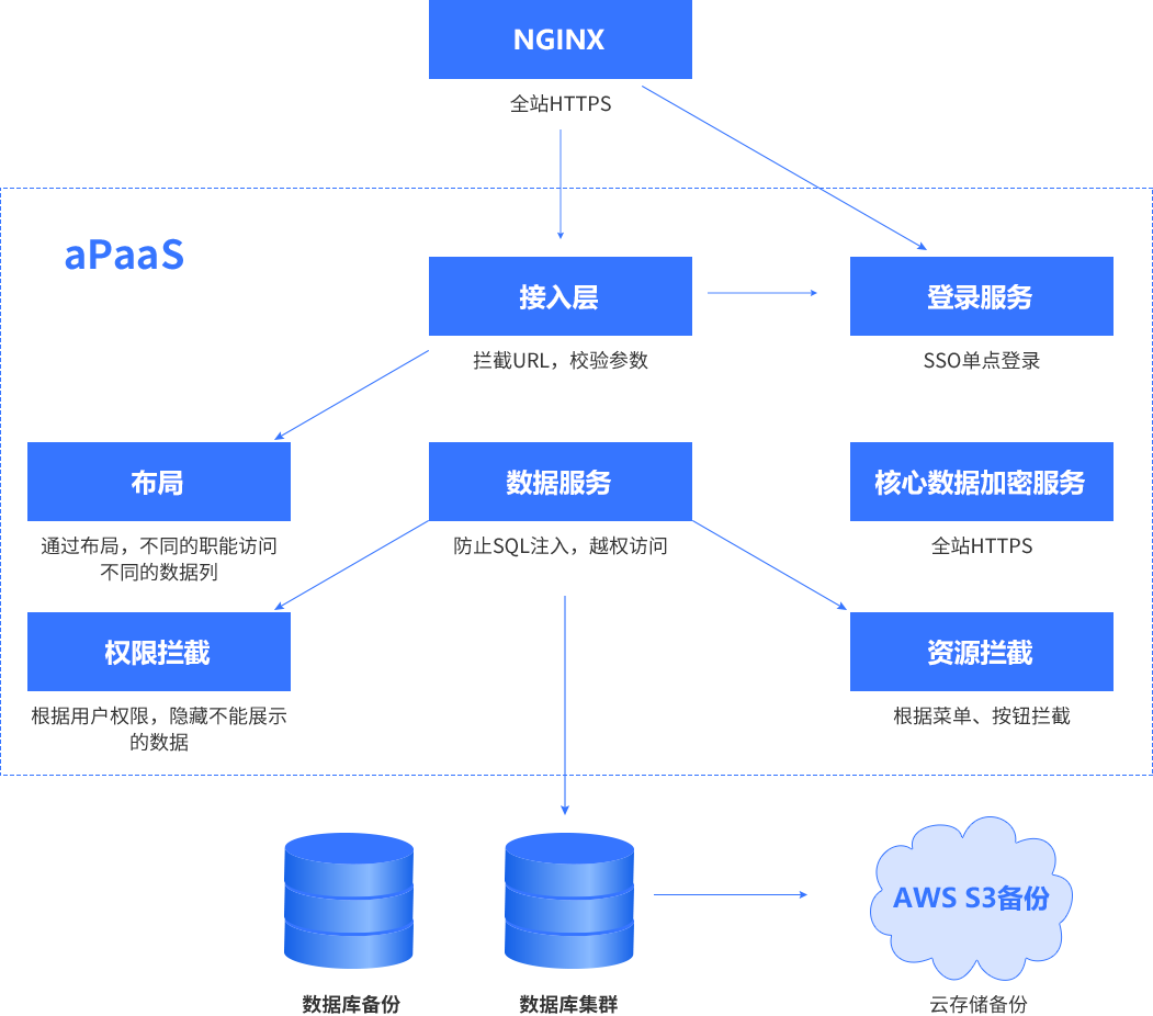 备注::平台与业务分离,,,开发运维只运维平台,,业务专家生成的元数据(表/字段/运行逻辑)+业务数据全部以碎片的方式存储在DB中,,,技术人员无法解读,,,只有业务专家授权后才能导出元数据+业务数据